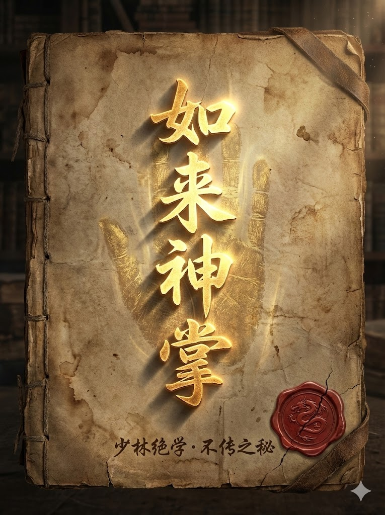 做一本《如来神掌》武功秘籍封面,金色书法+古籍质感。