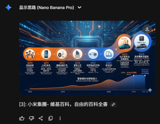 想做一张小米公司从2010到2025的发展历程图,手机→手环→造车,每个阶段都有。